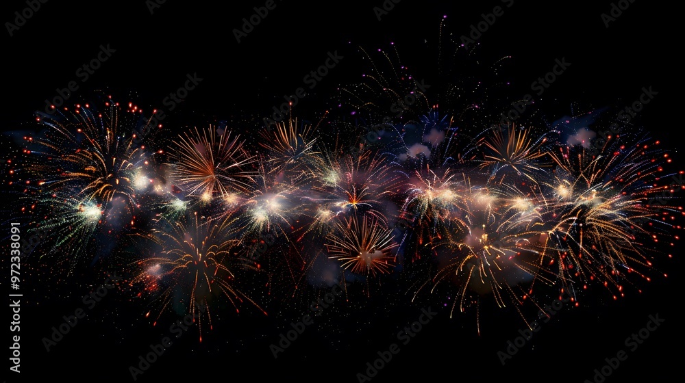 Wall mural fireworks display: colorful fireworks exploding in the night sky, creating beautiful patterns. - Wall murals Wall mural fireworks display: colorful fireworks exploding in the night sky, creating beautiful patterns. - Wall murals
