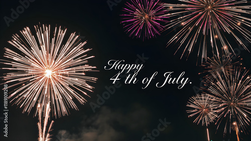 The watermark will not be included on Wall mural.: Fireworks exploding in the night sky, with the text "happy 4th of july" in elegant script