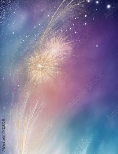 The watermark will not be included on Wall mural.: Fireworks in the sky - abstract light colorful background - generative ai
