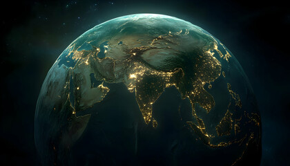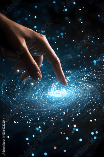 Wall mural first contact concept with a hand touching a spinning vortex of light particles, symbolizing connect