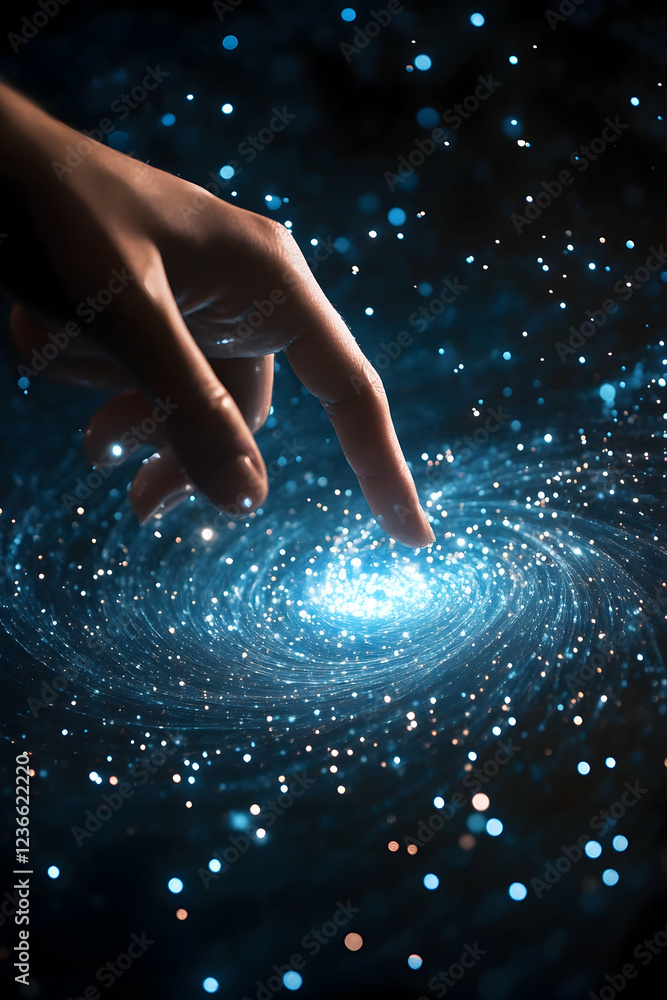 The watermark will not be included on Wall mural.: First contact concept with a hand touching a spinning vortex of light particles, symbolizing connect