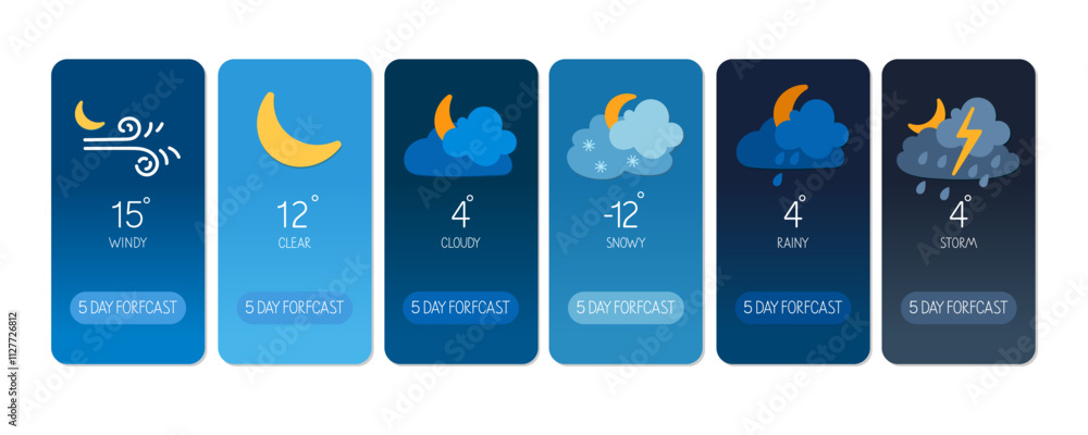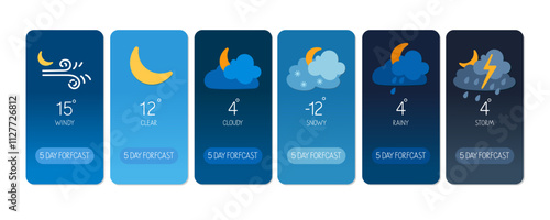 Wall mural : Five day weather forecast with varying conditions and temperatures displayed in icons