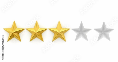 Wall mural five golden stars falling in place. 5 star rating. 3d render with mask.