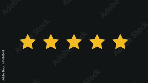 Wall mural : Five stars rating animation video - 5 star review motion graphic isolated on balck background -