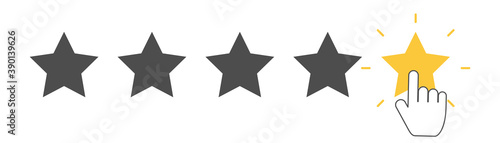 Five yellow stars with clicking hand - quality rank set - best choice illustration - hand touching lastWall mural