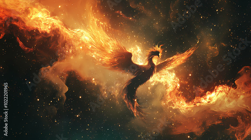 Wall mural : Flame phoenix in galaxy background by ai generative - phoenix in flames - illustration