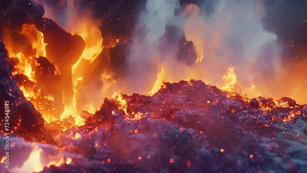 The watermark will not be included on Wall mural.: Flames dance across a snowcovered landscape creating a captivating display of the interplay between