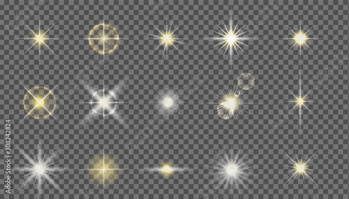 The watermark will not be included on Wall mural.: Flash camera light effect - realistic twinkle stars - vector glow shine element set - starlight isolate