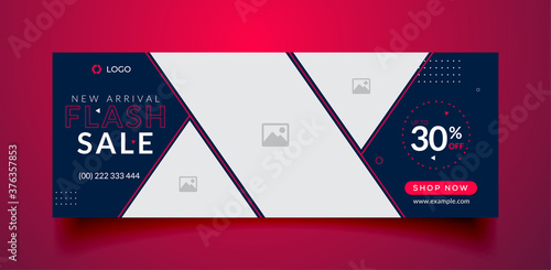 Wall mural : Flash sale facebook cover page timeline web ad banner template with photo place modern layout dark b