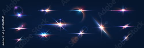 Wall mural flash. realistic flares. glowing effects. photography camera light or sunlight reflection from lens.