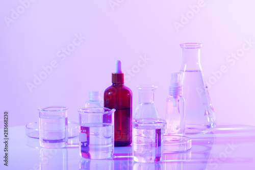 The watermark will not be included on Wall mural.: Flask of water olution in science laboratory background