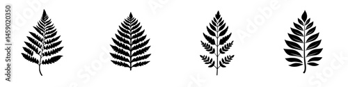 Flat black icons of ferns showcasing diverse shapes and patterns suitable for design elements and crWall mural