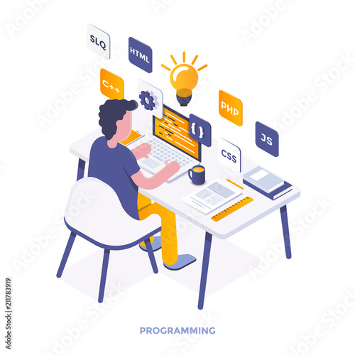 The watermark will not be included on Wall mural.: Flat color modern isometric illustration - programming