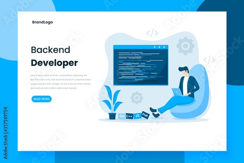 The watermark will not be included on Wall mural.: Flat design backend developer landing page