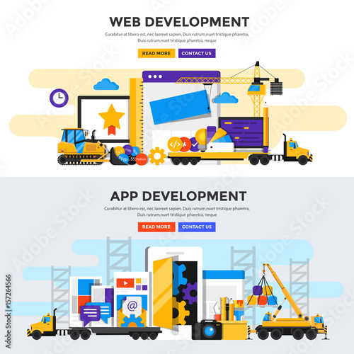 The watermark will not be included on Wall mural.: Flat design concept banner - apps and web development