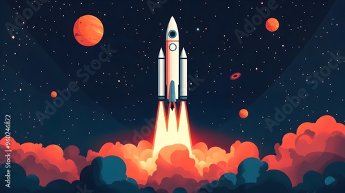 The watermark will not be included on Wall mural.: Flat design of a rocket launching into space with bold colors