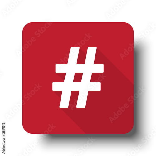 Wall mural : Flat hashtag web icon on red button with drop shadow