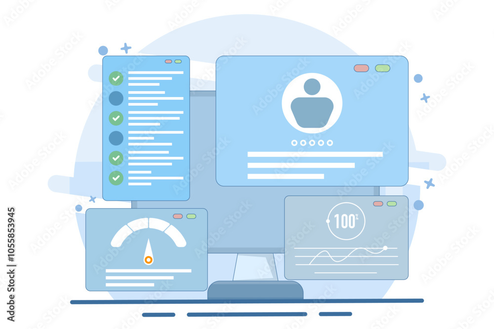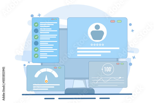 Wall mural flat illustration concept of usability testing, qa engineering, developer, tester looking for bugs,  - Wall murals Wall mural flat illustration concept of usability testing, qa engineering, developer, tester looking for bugs, - Wall murals
