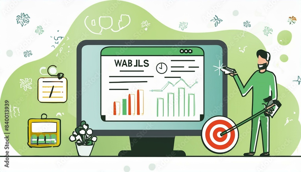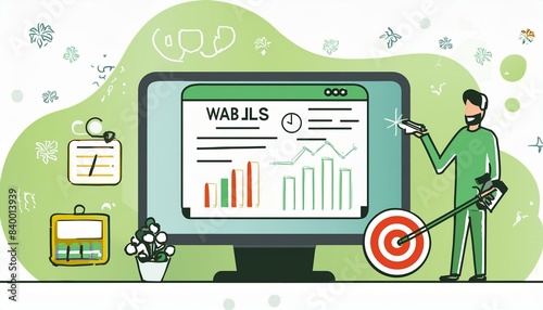 The watermark will not be included on Wall mural.: Flat illustration depicting web analytics information and website statistic development -