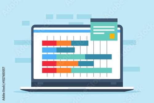 Wall mural flat illustration of computer laptop displays gantt chart assisting in planning for software develop - Wall murals Wall mural flat illustration of computer laptop displays gantt chart assisting in planning for software develop - Wall murals