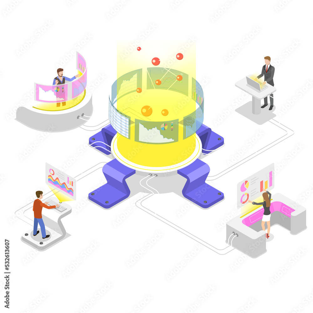 The watermark will not be included on Wall mural.: Flat isometric concept of statictical data analysis and analytics -