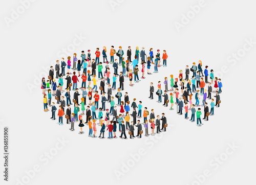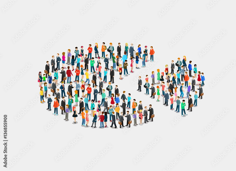 Wall mural flat isometric crowd of people vector. 3d social segment.