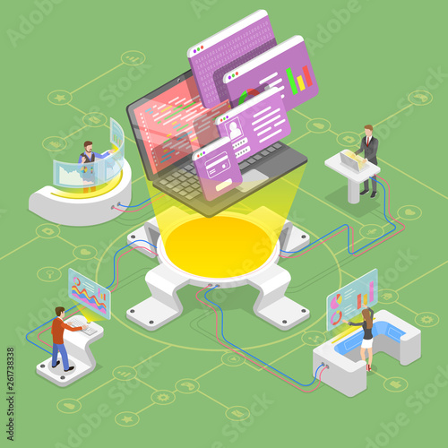 Wall mural flat isometric vector concept of software development, teamwork, brainstorm, coding