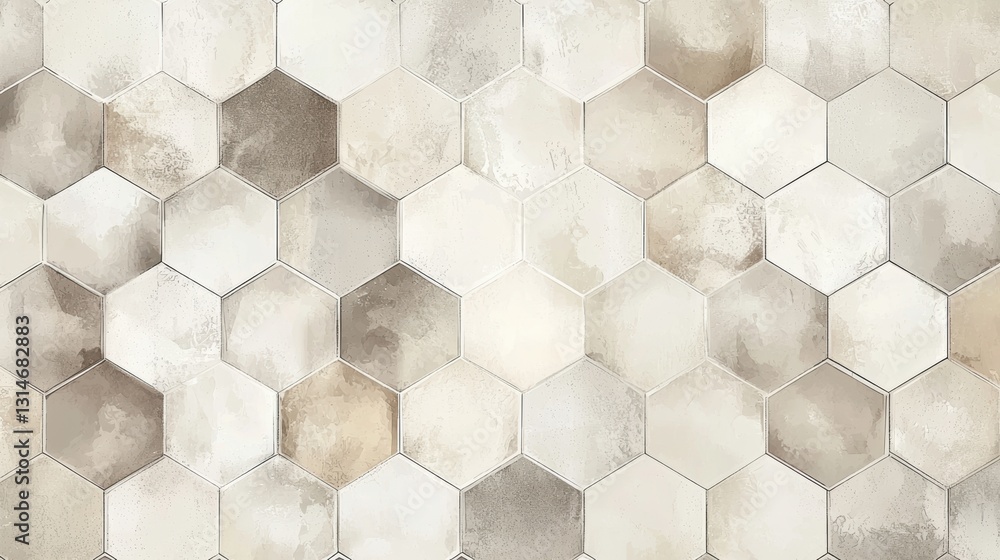 The watermark will not be included on Wall mural.: Flat lay sketch of hexagonal stone pattern in muted tones for design and artistic inspiration