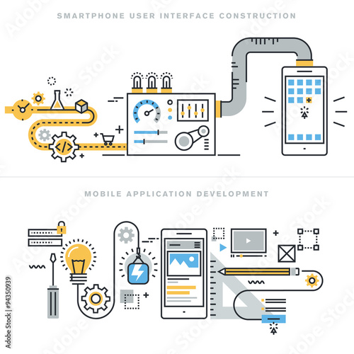 Wall mural flat line concepts for mobile website design and development, mobile application development, respon