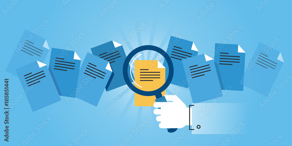 Wall mural flat line design website banner of document search. modern vector illustration for web design, marke - Wall murals Wall mural flat line design website banner of document search. modern vector illustration for web design, marke - Wall murals