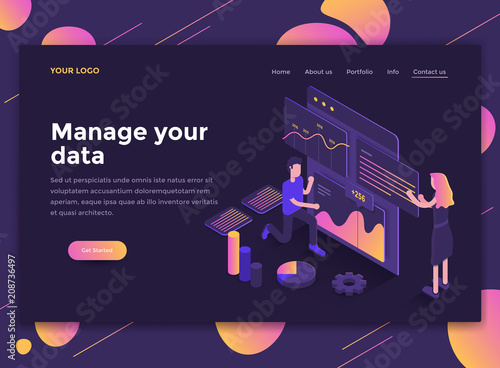 The watermark will not be included on Wall mural.: Flat modern design of website template - manage your data
