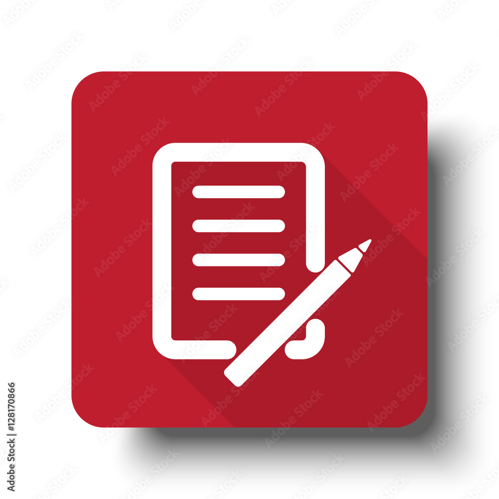 Wall mural : Flat pen and paper web icon on red button with drop shadow
