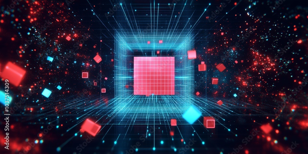 Flat pixel style, there are fluctuating pixel small cubes to form a fluctuating matrix, high on bothWall mural