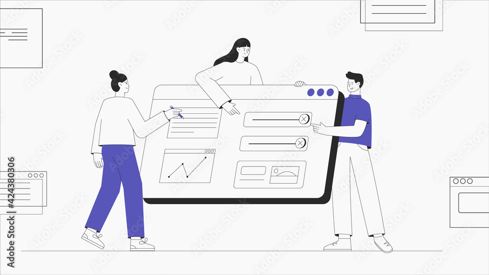 Wall mural flat style business people illustration. software development company, coding and programming. workf - Wall murals Wall mural flat style business people illustration. software development company, coding and programming. workf - Wall murals