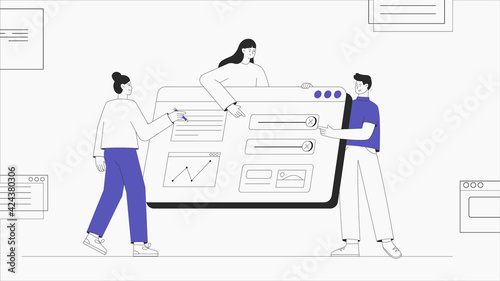 Wall mural flat style business people illustration. software development company, coding and programming. workf