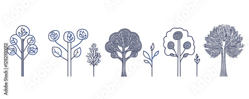 Wall mural flat style trees icons set - linear vector collection of abstract tree designs.