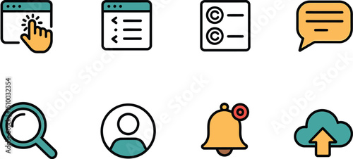 Wall mural flat style web and notification icons on white background for website and app development projects - Wall murals Wall mural flat style web and notification icons on white background for website and app development projects - Wall murals