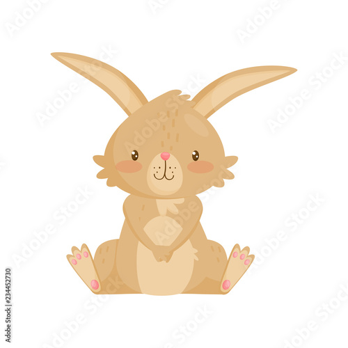The watermark will not be included on Wall mural.: Flat vector icon of adorable brown rabbit - bunny with pink cheeks and shiny eyes