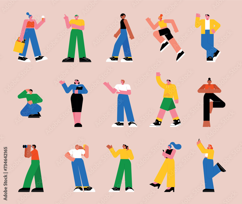 Flat vector illustration - a set of many people in various poses - vol - 5Wall mural