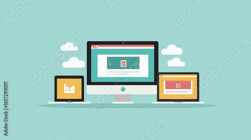 The watermark will not be included on Wall mural.: Flat web design in responsive vector template