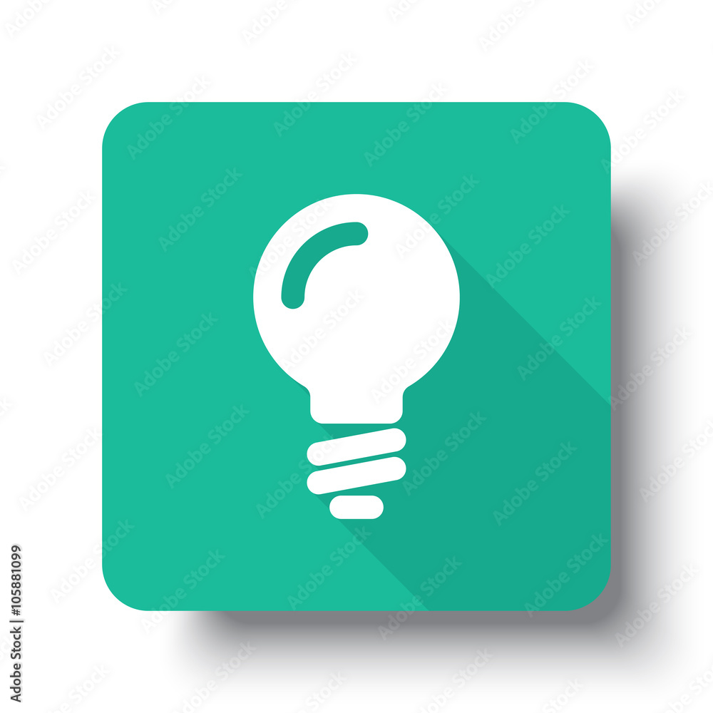 Flat white light bulb web icon on green button with drop shadowWall mural