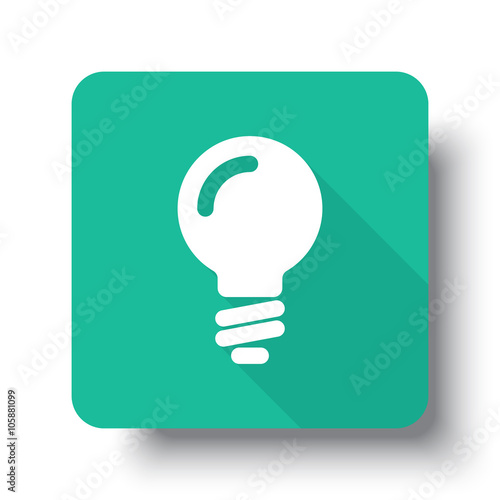 Wall mural : Flat white light bulb web icon on green button with drop shadow