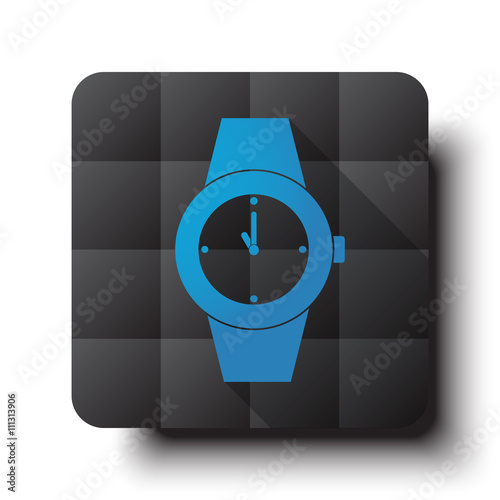 Wall mural : Flat wrist watch icon on black app button with drop shadow