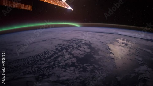 Wall mural flight over the earth's surface, made from a space station. 3d rendering