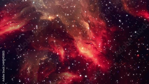 Wall mural : Flight through the clouds and gas of cosmic interstellar nebulae toward bright light -