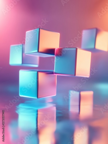 Wall mural floating 3d cubes create a vibrant futuristic atmosphere with colorful reflections and neon gradient
