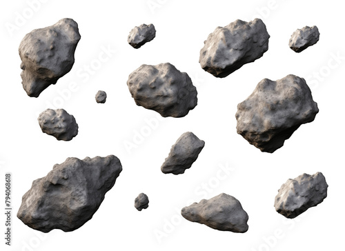 The watermark will not be included on Wall mural.: Floating asteroids isolated on transparent background