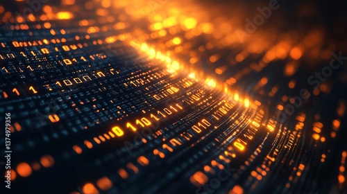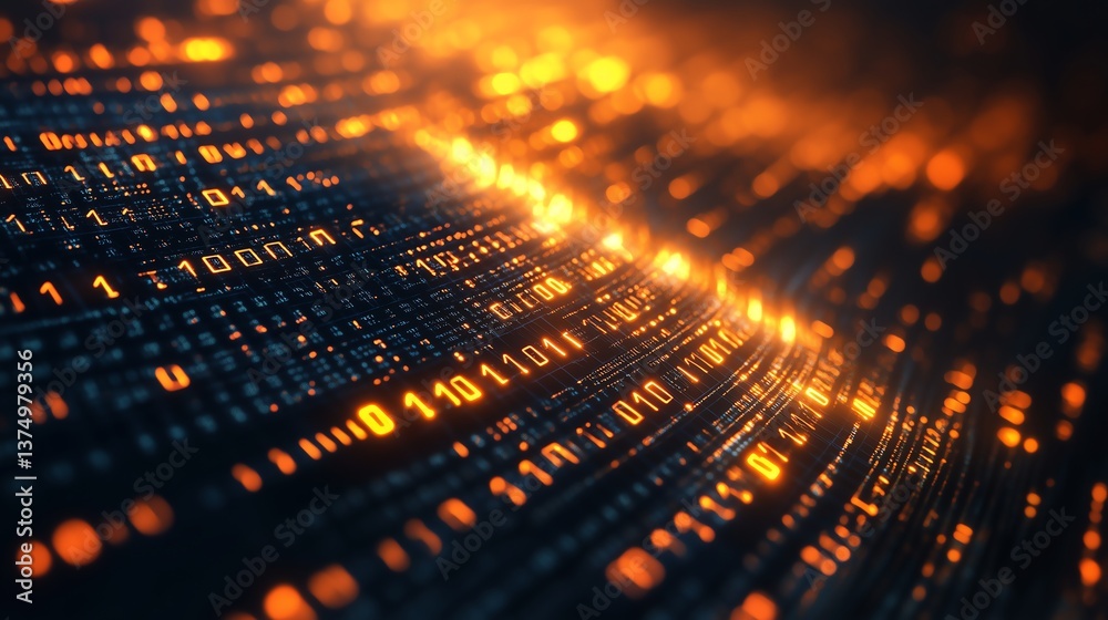The watermark will not be included on Wall mural.: Floating binary code matrix with soft glow on developer concept background