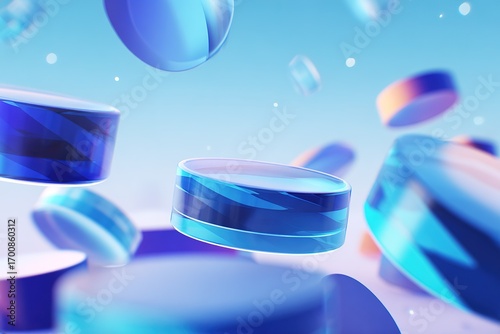 Wall mural : Floating blue and transparent circular shapes create a surreal visual experience in a dreamy atmosph