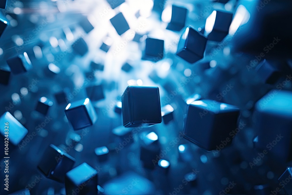 The watermark will not be included on Wall mural.: Floating blue cubes in a dynamic digital space create a mesmerizing abstract visual effect, perfect
